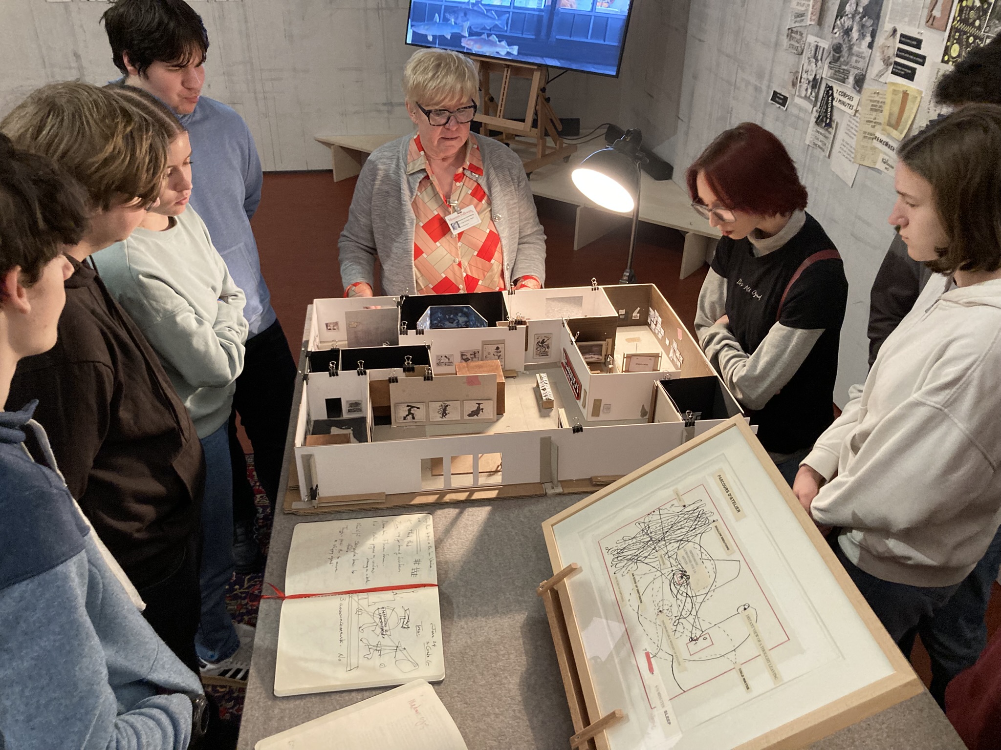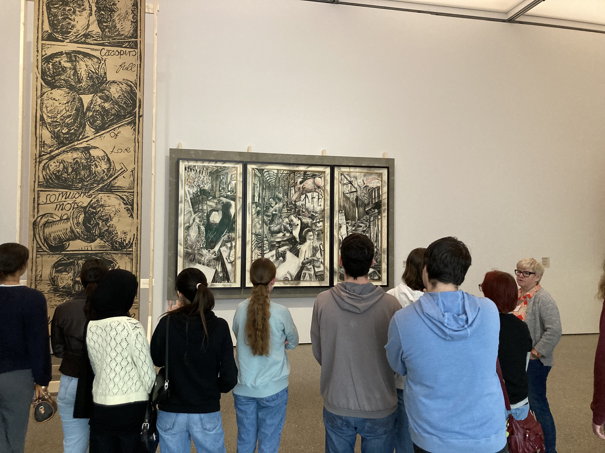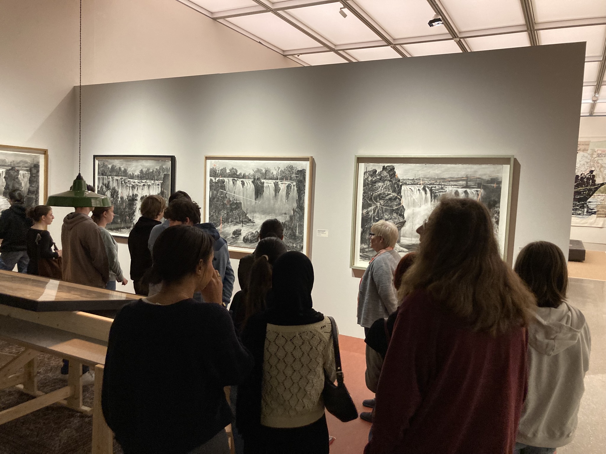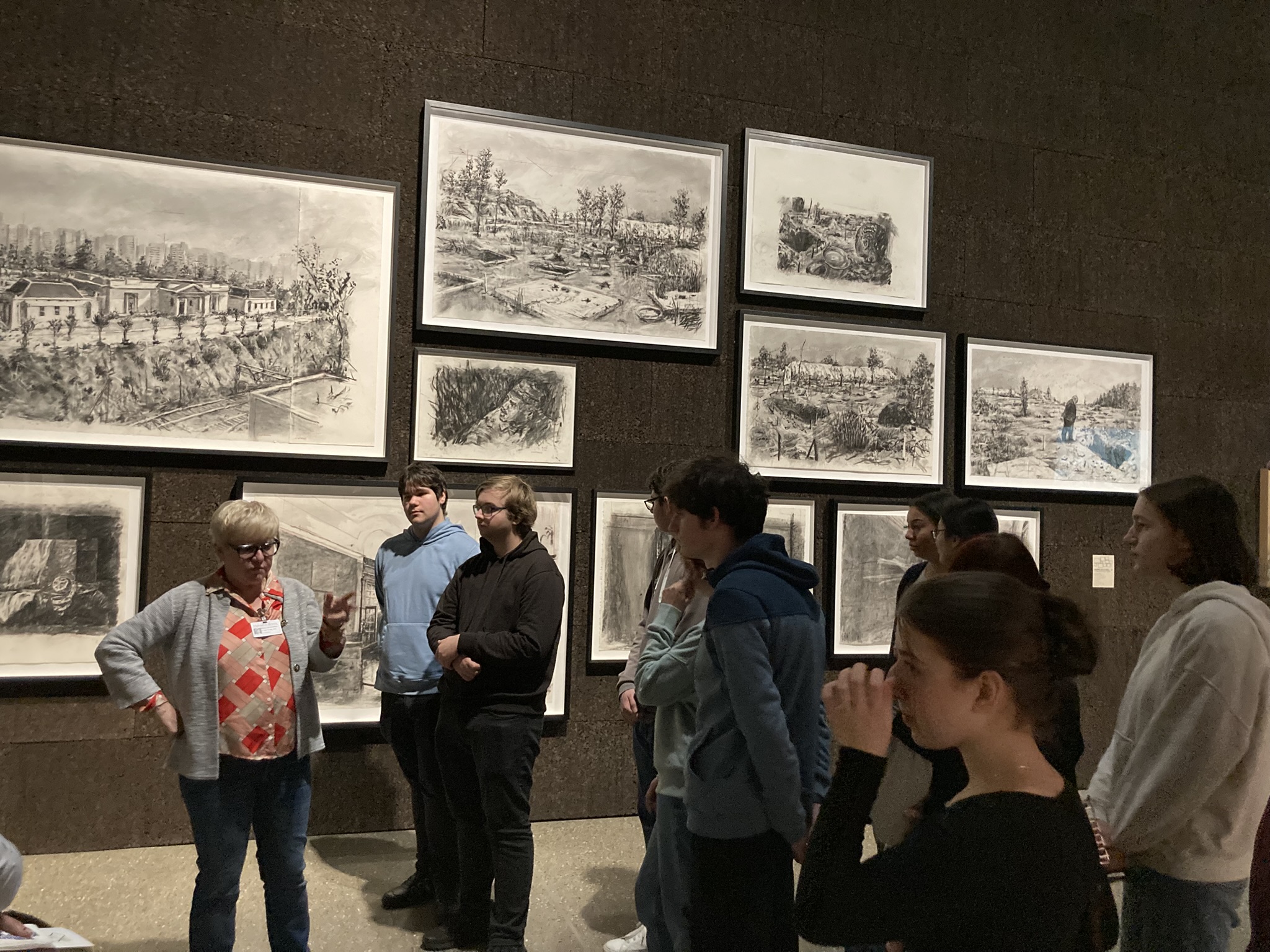 Die Ausstellung, die wir besucht haben, behandelte den Künstler William Kentridge, das aktuelle Thema des Quartals. Die Schüler*innen haben eine Führung zu den Arbeiten des Künstlers erhalten und konnten alle Werke in Ruhe betrachten. Anschließend haben sie zusätzlich die ständige Sammlung des Museums besucht.